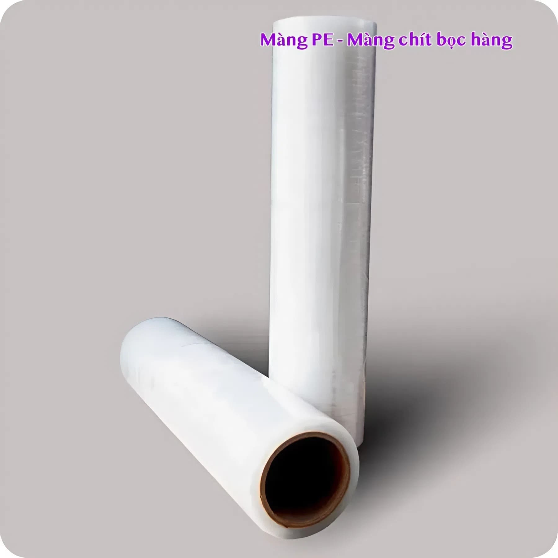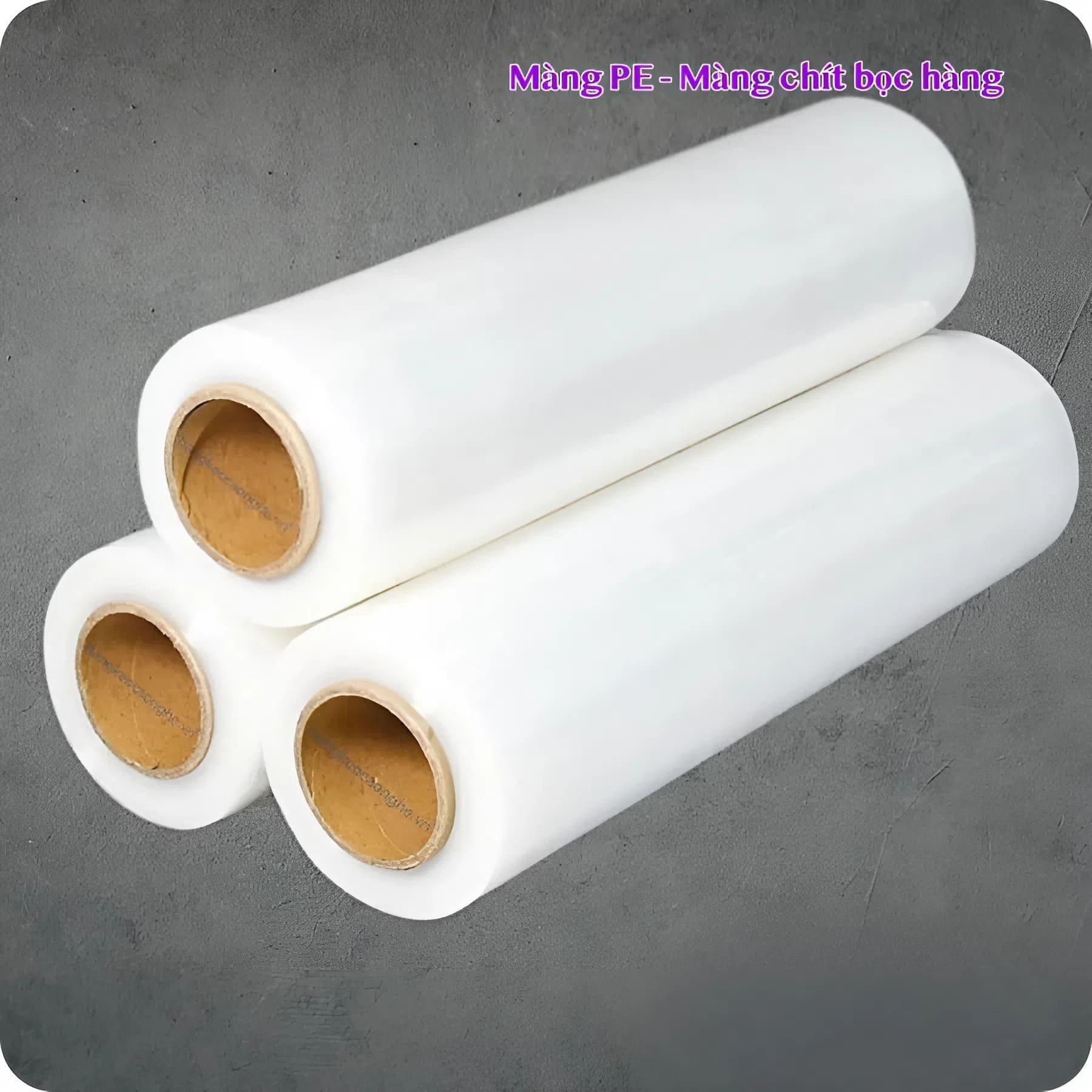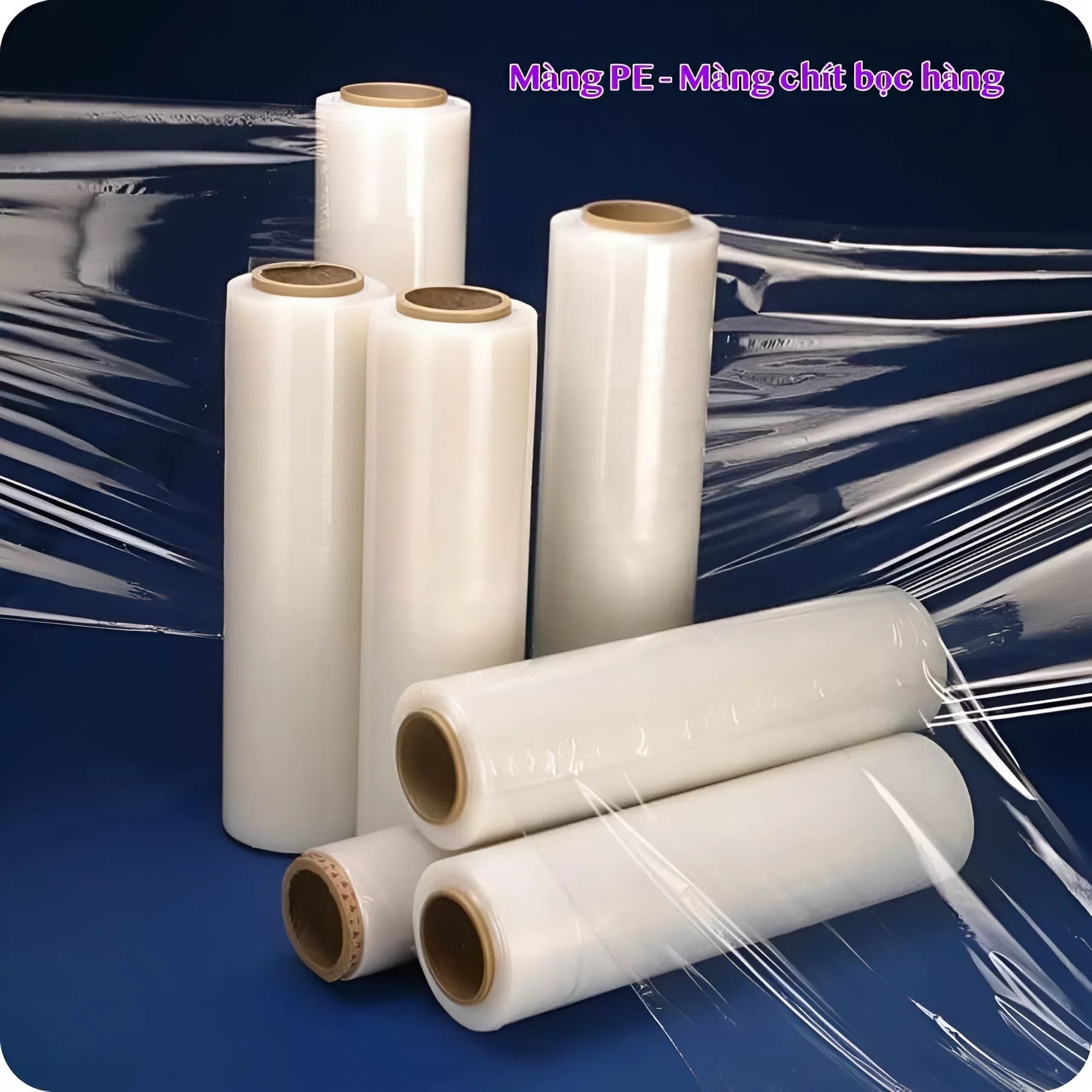 Màng PE (Polyethylene) hay còn được gọi là màng chít, là một loại màng nhựa mỏng được sản xuất từ polymer polyethylene. Với cấu trúc đơn giản nhưng hiệu quả, màng PE có khả năng chống thấm nước, chịu lực tốt và linh hoạt trong việc sử dụng. Nhờ vào tính chất này, màng PE trở thành một trong những lựa chọn hàng đầu cho việc bọc và bảo vệ hàng hóa.