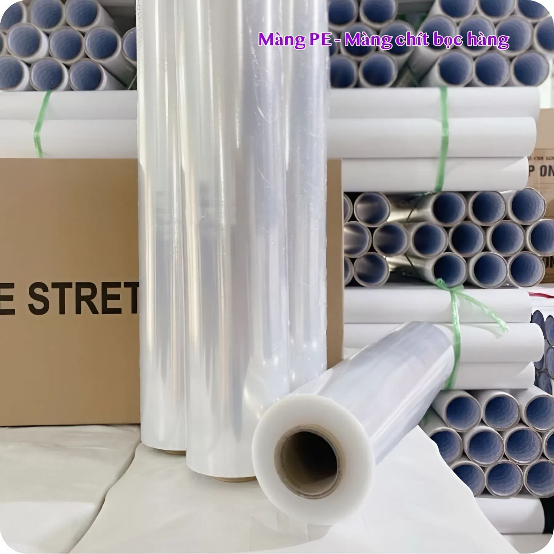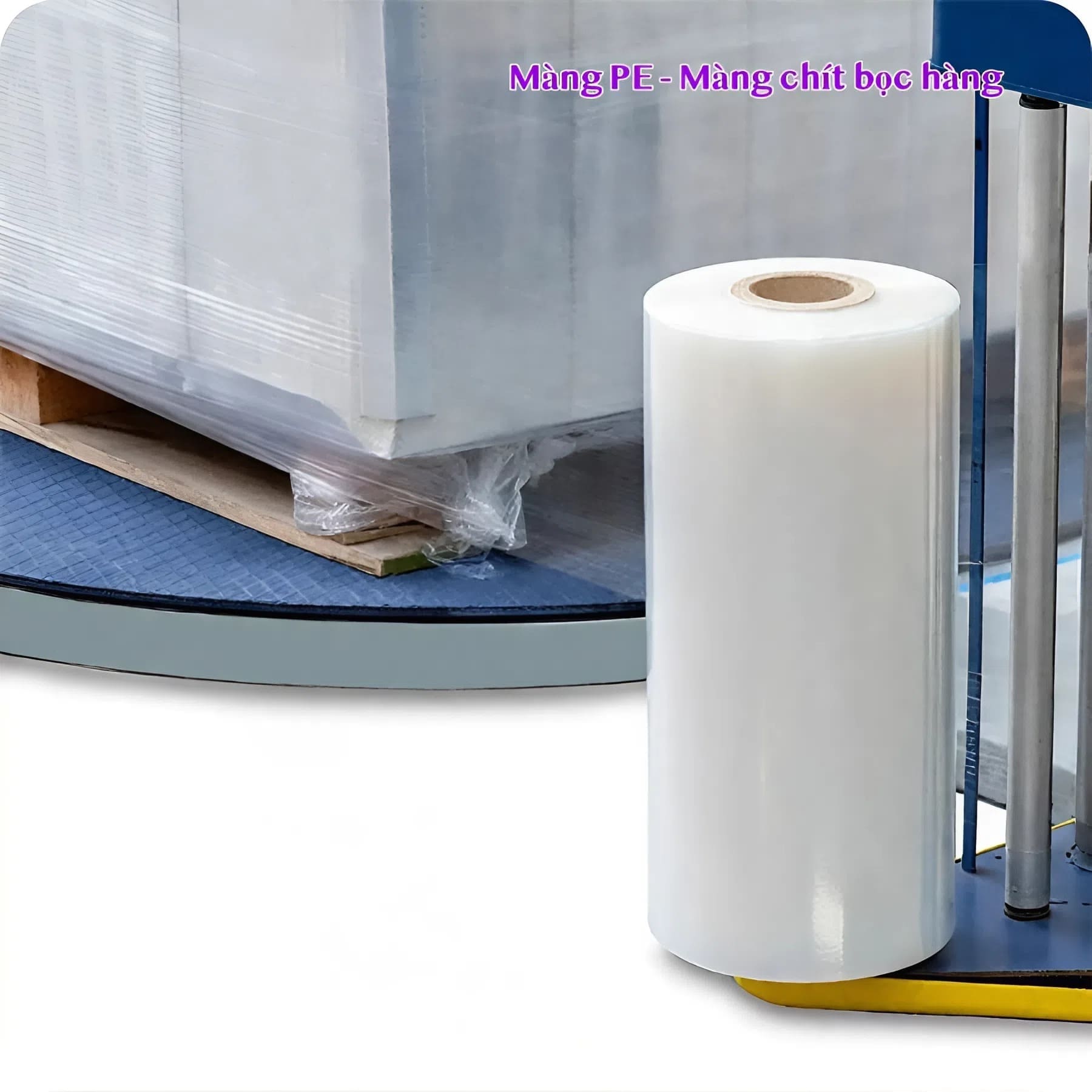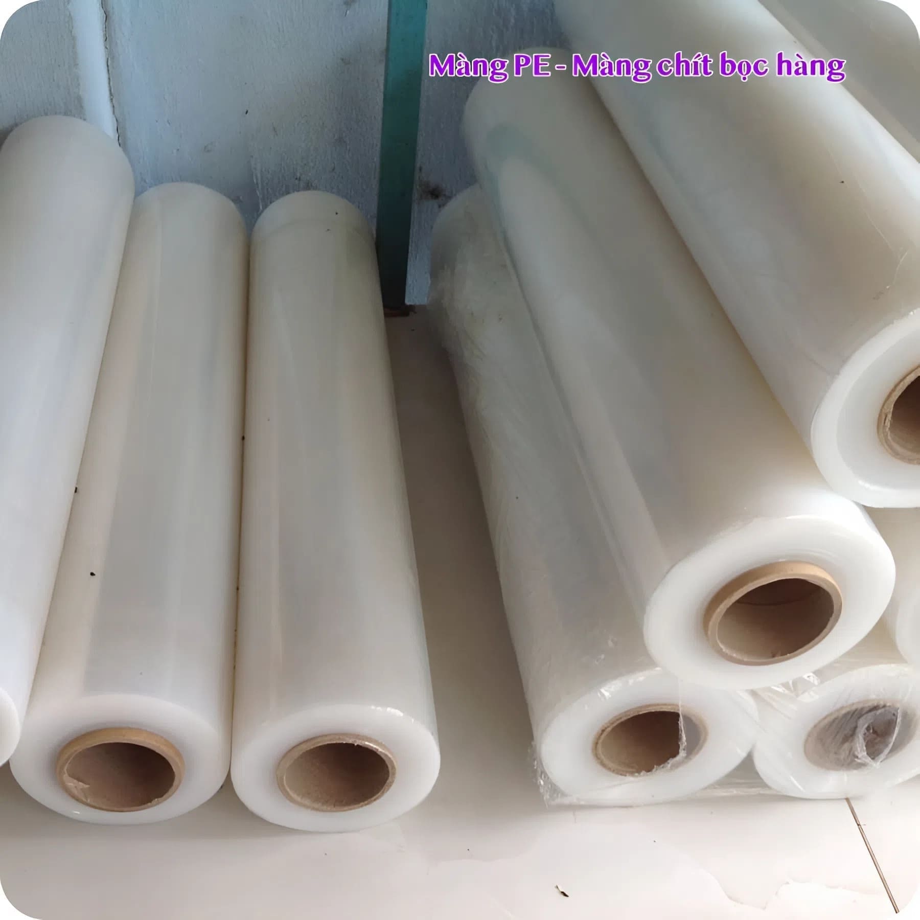 Màng PE (Polyethylene) hay còn được gọi là màng chít, là một loại màng nhựa mỏng được sản xuất từ polymer polyethylene. Với cấu trúc đơn giản nhưng hiệu quả, màng PE có khả năng chống thấm nước, chịu lực tốt và linh hoạt trong việc sử dụng. Nhờ vào tính chất này, màng PE trở thành một trong những lựa chọn hàng đầu cho việc bọc và bảo vệ hàng hóa.
